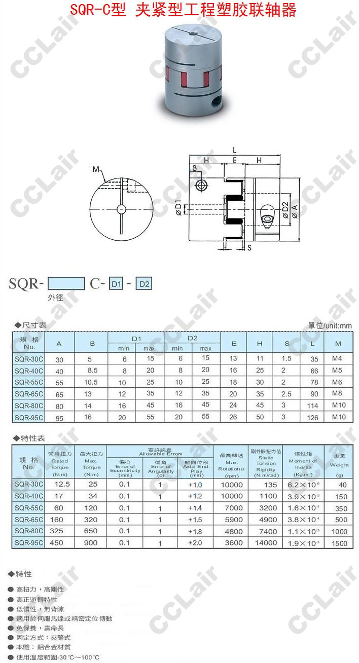 SQR-30C,SQR-40C,SQR-55C,SQR-65C,SQR-80C,SQR-95C,夾緊型工程塑膠聯(lián)軸器