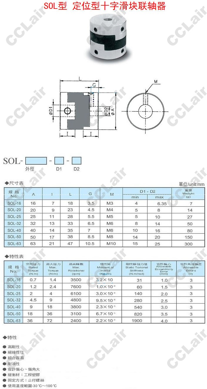 SOL-16,SOL-20,SOL-25,SOL-32,SOL-40,SOL-50,SOL-63,定位型十字滑塊聯(lián)軸器