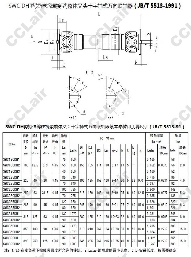 詳細(xì)信息 SWC180DH1,SWC225DH2,SWC285DH2,SWC315DH1,SWC350DH2,SWC390DH1,SWC390DH2,十字軸式萬向聯(lián)軸器