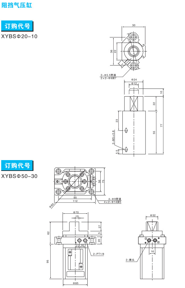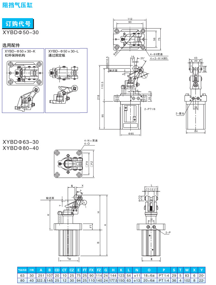 XYBD-32-20,XYBD-50-30,XYBR-20-20,XYBR-32-20,XYBS-20-10,XYBS-50-30,阻擋氣缸