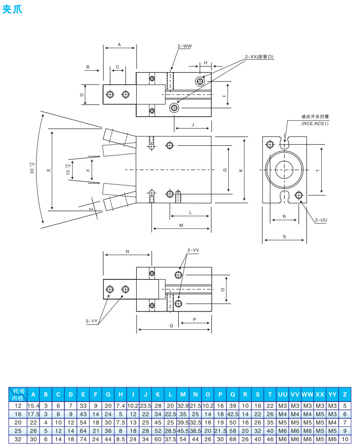 XYHA-12,XYHA-16,XYHA-20,XYHA-25,XYHA-32,夾爪氣缸
