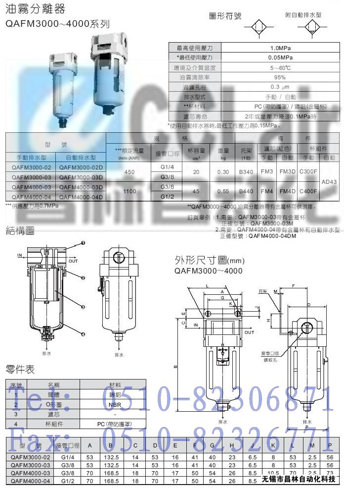 QAFD4000-03,QAFD4000-03D,QAFD4000-04,QAFD4000-04D,微霧分離器