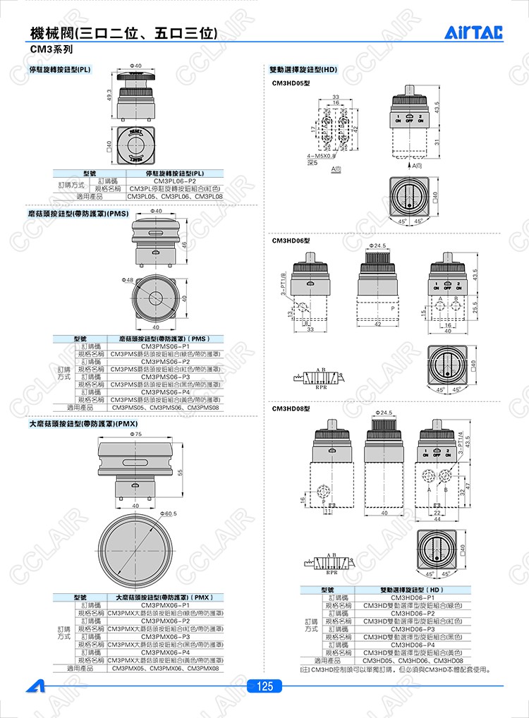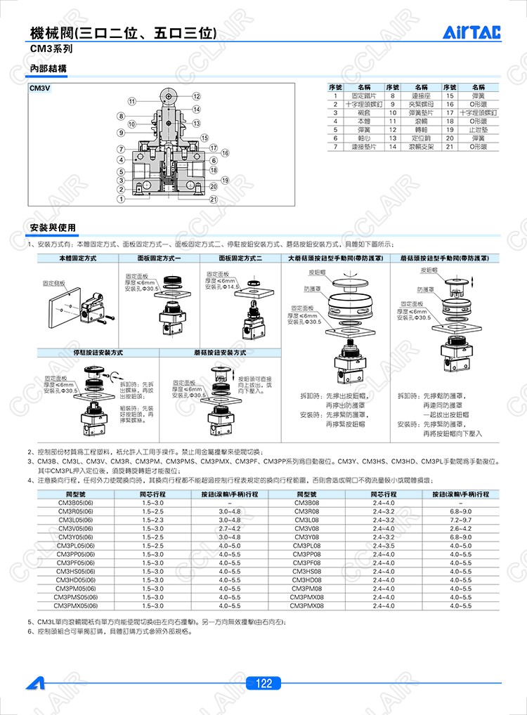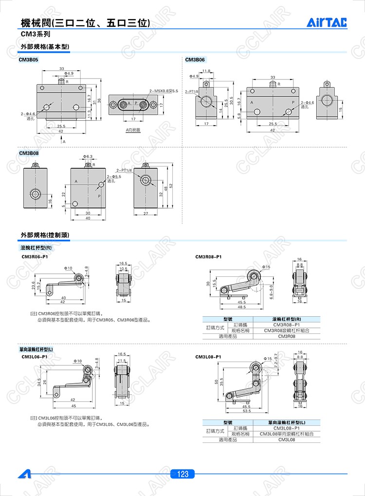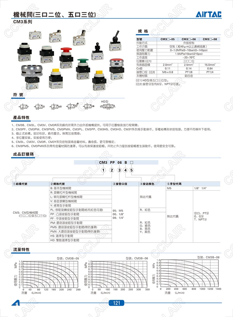 詳細信息 CM3B-05,CM3R-05,CM3L-05,CM3V-05,CM3Y-05,CM3PL-05,AIRTAC機械閥