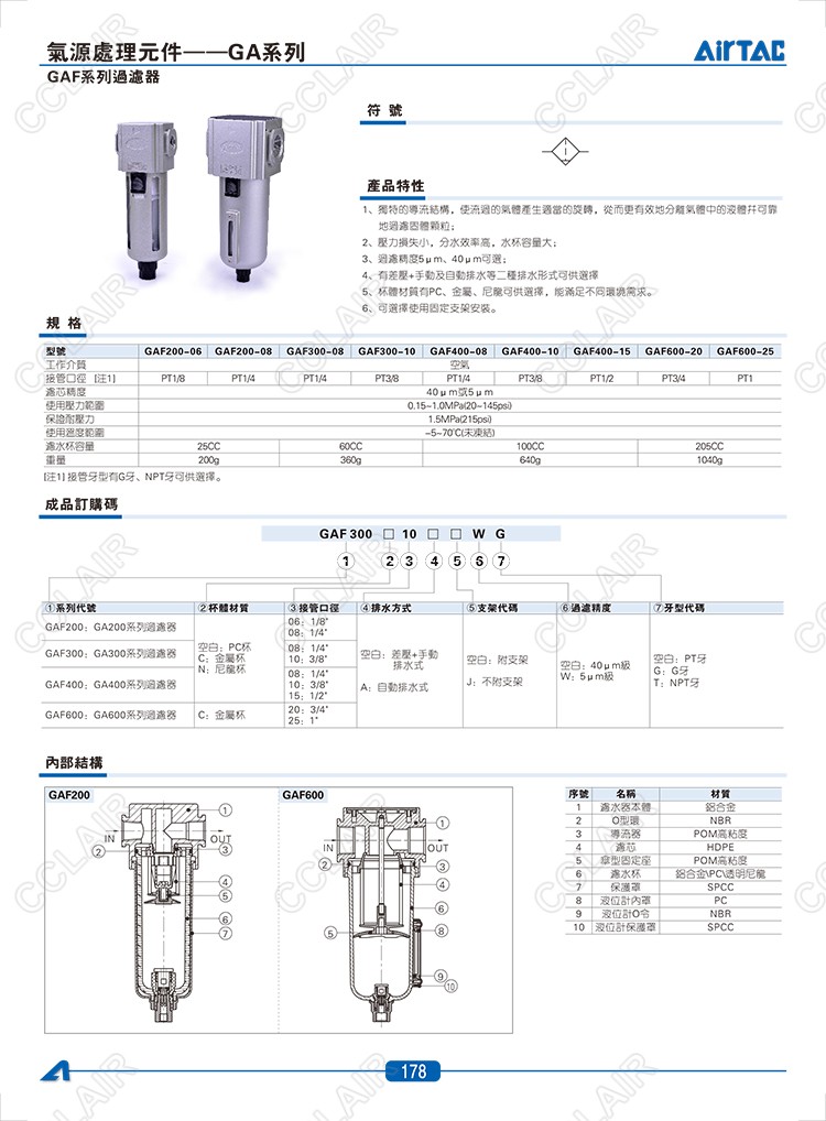 GAF200-06,GAF200-08,GAF300-08,GAF300-10,GAF400-08,GAF400-10,臺灣AIRTAC過濾器