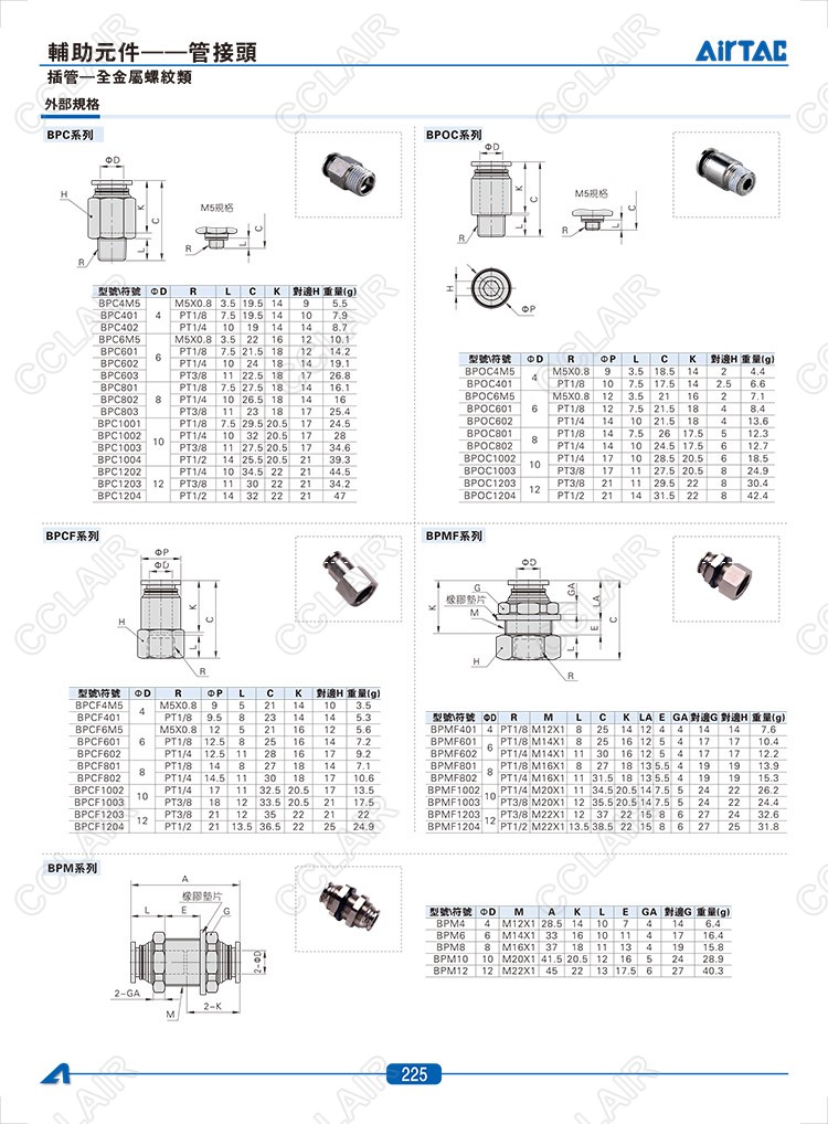 BPC4M5,BPC401,BPOC4M5,BPOC401,BPCF4M5,BPCF401,BPMF401,BPMF601,BPM4,BPM6,臺灣AIRTAC管接頭