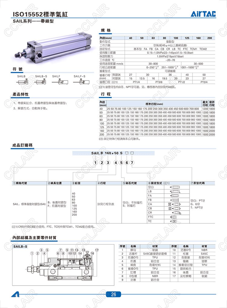 SAIL32*25,SAIL32*25-S,SAIL32*50,SAIL32*50-S,SAIL32*75,SAIL32*75-S,AIRTAC亞德客標(biāo)準(zhǔn)氣缸