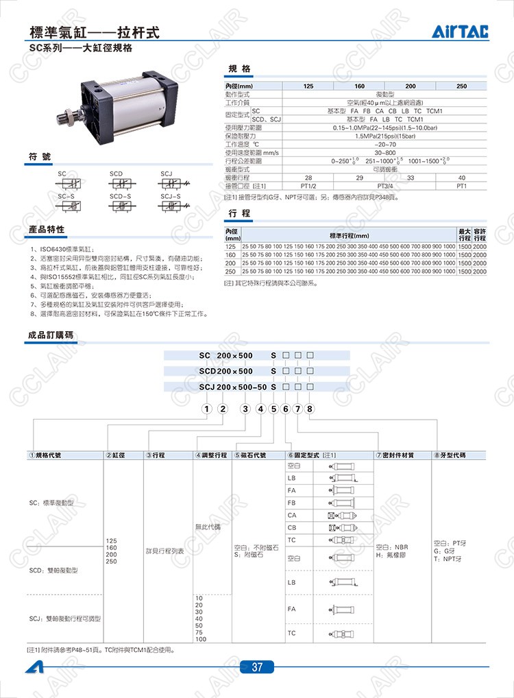 SC125*25,SC125*25-S,SCD125*25,SCD125*25-S,SCJ125*25,SCJ125*25-S,AIRTAC亞德客大缸徑規(guī)格標(biāo)準(zhǔn)氣缸--拉桿式