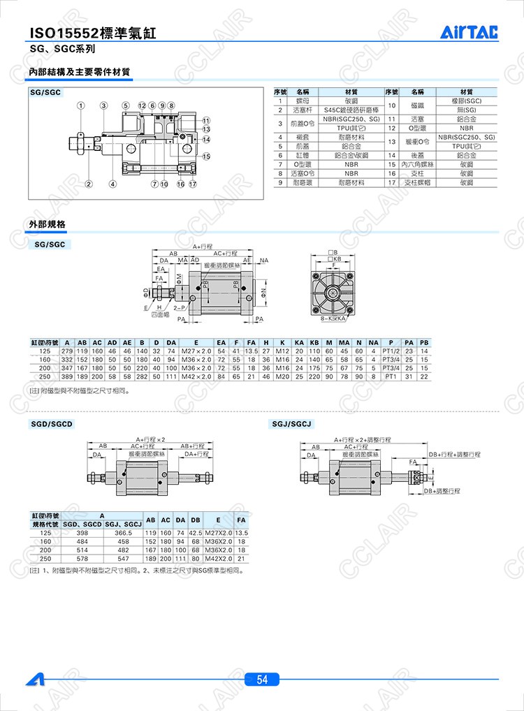 SG125*25,SG125*25-S,SGD125*25,SGD125*25-S,SGJ125*25,SGJ125*25-S,AIRTAC亞德客標(biāo)準(zhǔn)氣缸