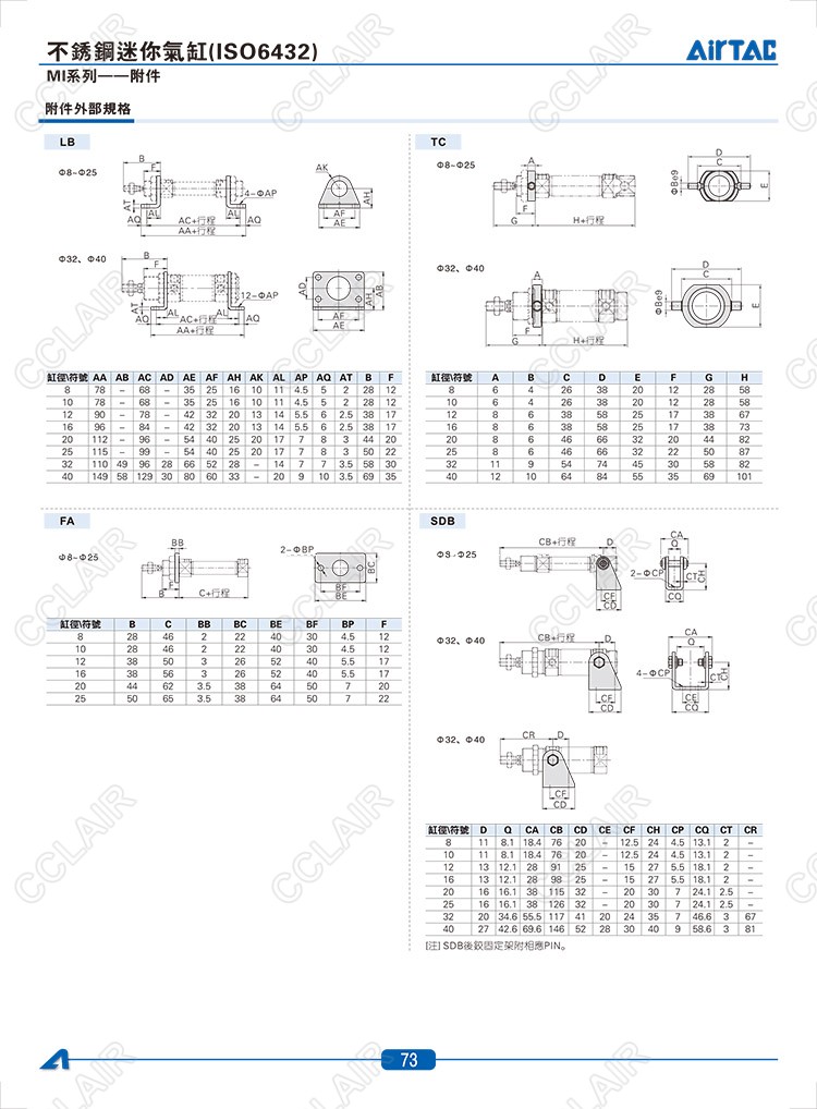 AIRTAC亞德客 不銹鋼迷你氣缸附件LB8,LB10,LB12,LB16,LB20,LB25,LB32,LB40 TC8,TC10,TC12,TC16,TC20,TC25,TC32,TC40 FA8,FA10,FA12,FA16,FA20,FA25 SDB8,SDB10,SDB12,SDB16,SDB20,SDB25,SDB32,SDB40