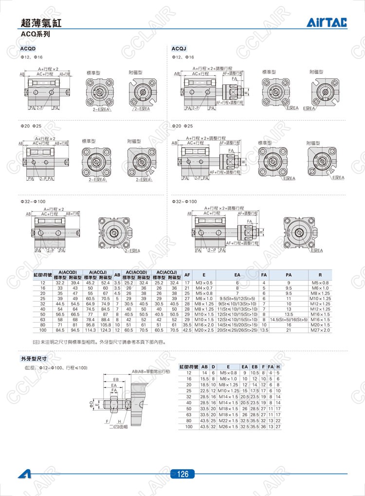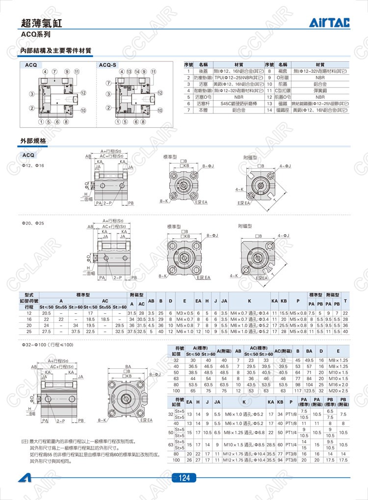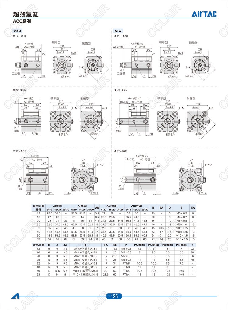 ACQ12*5,ACQ12*5-S,ASQ12*5,ASQ12*5-S,ATQ12*5,ACQD12*5,ACQJ12*5,AIRTAC亞德客超薄氣缸
