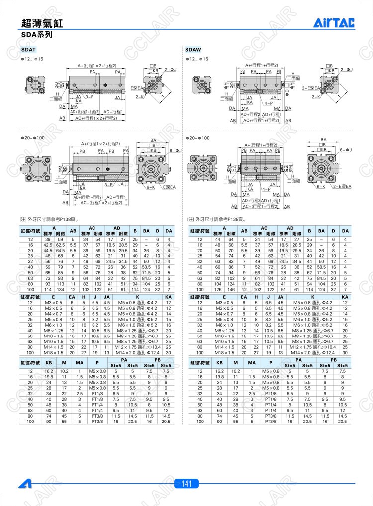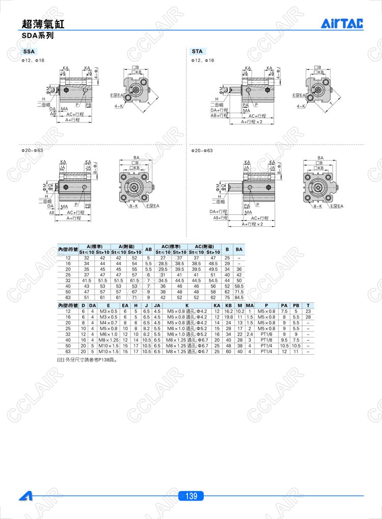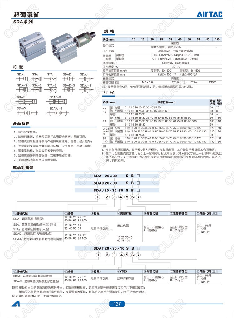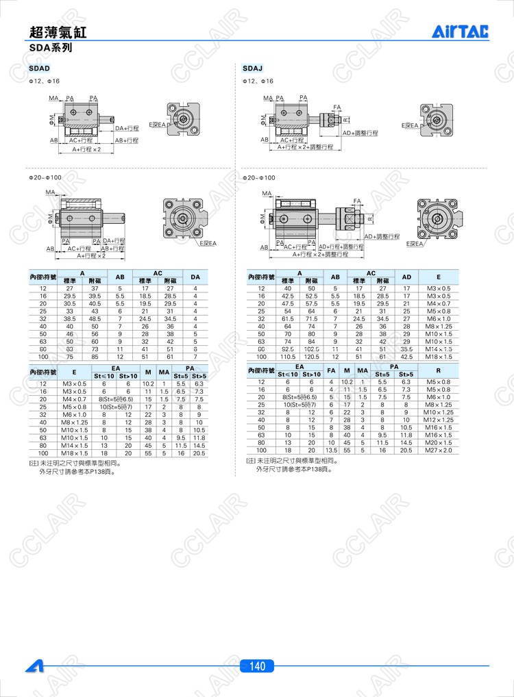 SDA12*5,SDA12*5-S,SSA12*5,SSA12*5-S,STA12*5,SDAD12*5,SDAJ12*5,AIRTAC亞德客超薄氣缸