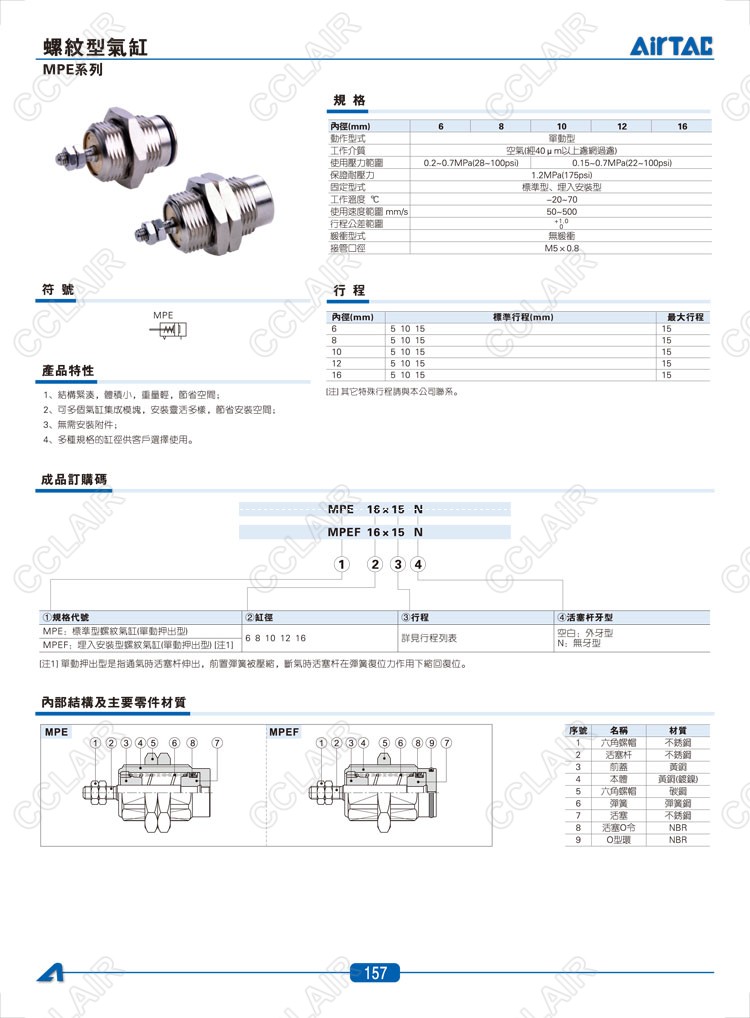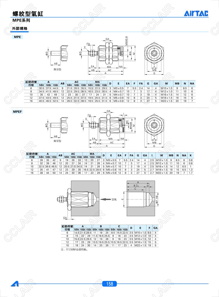 MPE6*5,MPE6*5-S,MPE6*10,MPE6*10-S,MPEF6*5,MPEF6*5-S,MPEF6*10,MPEF6*10-S,AIRTAC亞德客螺紋型氣缸