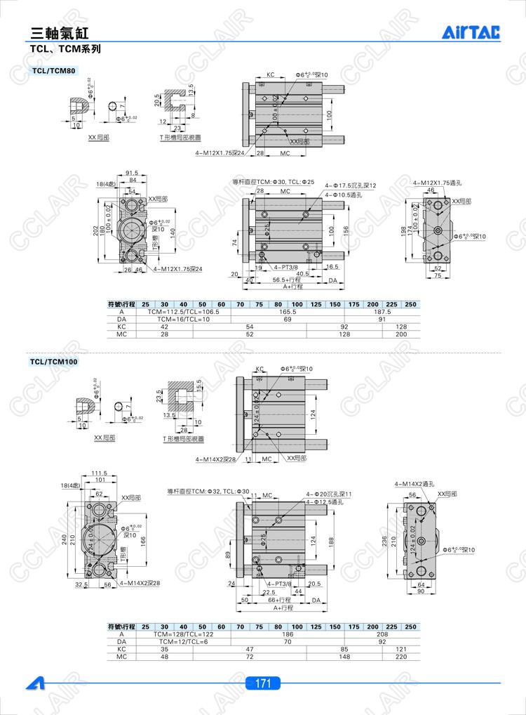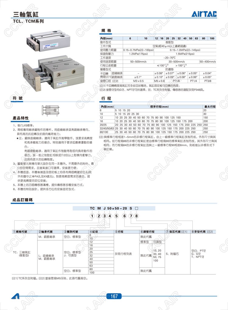 TCM6*5-S,TCM6*10-S,TCM6*15-S,TCL6*5-S,TCL6*10-S,TCL6*15-S,AIRTAC亞德客三軸氣缸