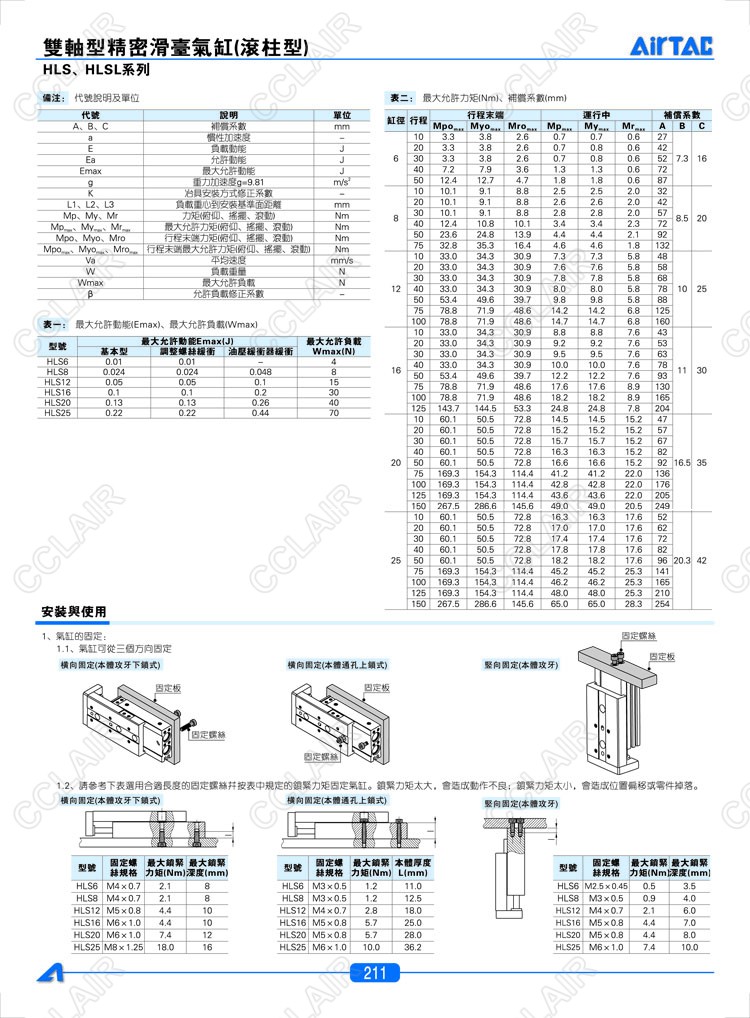 HLS6*10-S,HLS6*20-S,HLS6*30-S,HLSL6*10-S,HLSL6*20-S,HLSL6*30-S,AIRTAC亞德客雙軸型精密滑臺氣缸