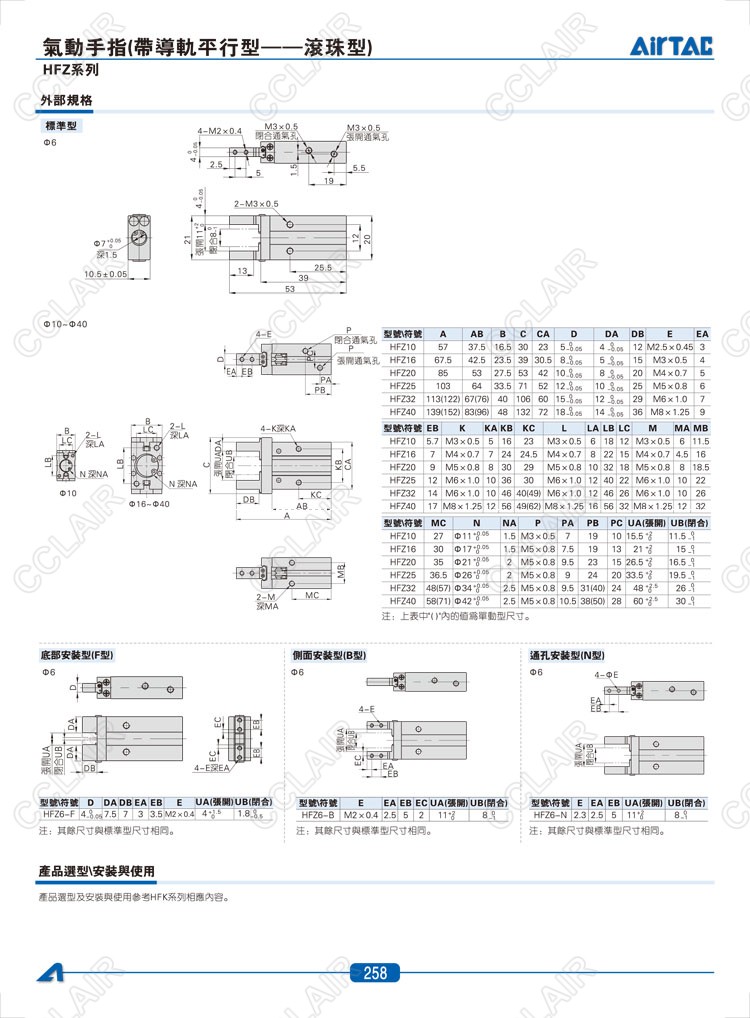 亞德客AIRTAC,HFZ6,HFZ6-B,HFSZ10,HFSZ16,HFTZ25,HFTZ32,氣動(dòng)手指