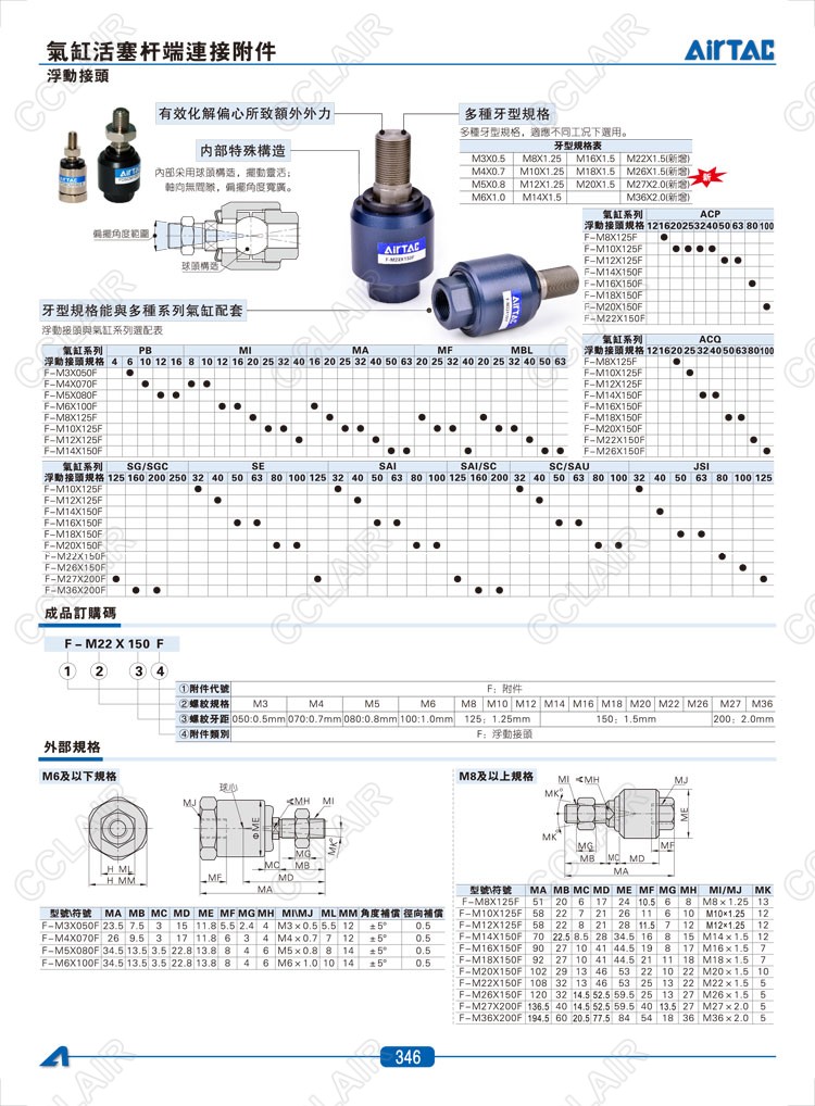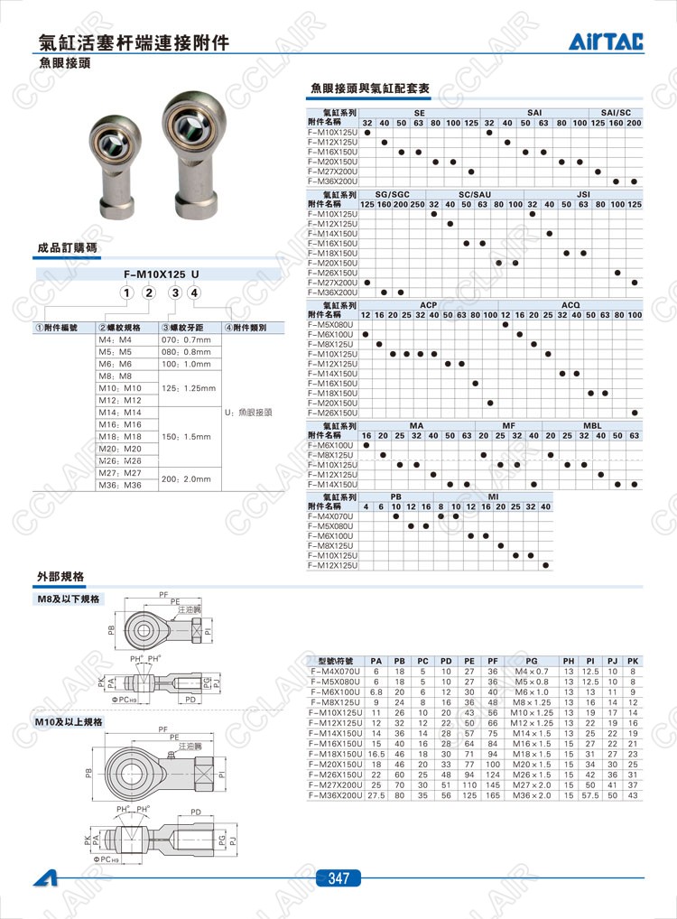 亞德客AIRTAC,F-M14X150I,F-M3X050Y,F-M4X070F,F-M6X100U,氣缸活塞桿端連接附件