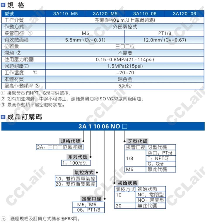 3A110-M5,3A120-M5,3A110-06,3A120-06,3A110-M5-NC-T,3A120-M5-NO-T,3A110-06-NC-G,氣控閥 |