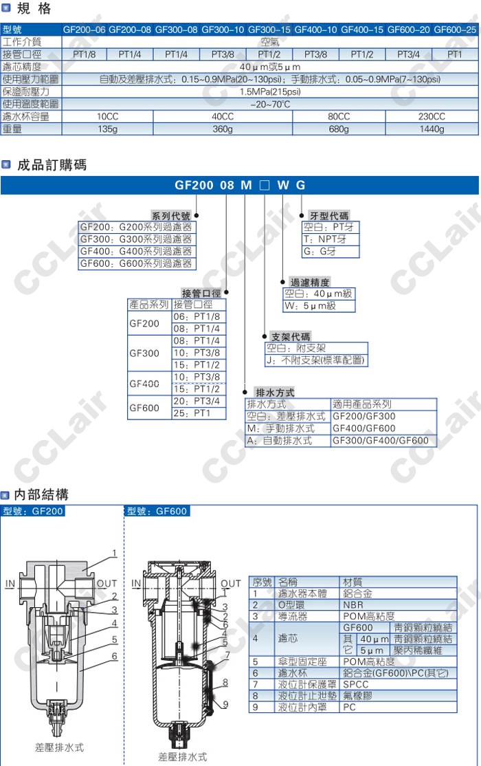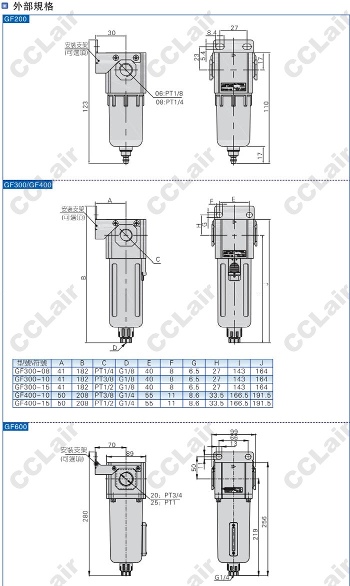 GF200-06,GF200-08,GF300-08,GF300-10,GF300-15,GF400-10,GF400-15,GF600-20,GF600-25,調(diào)理組合
