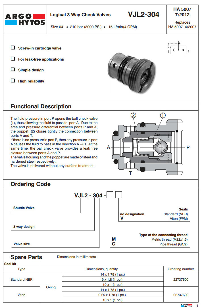 VJL2-304-M,VJL2-304-G,ARGO邏輯3路止回閥