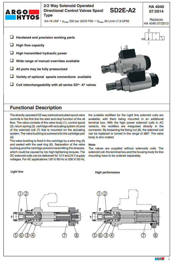 SD2E-A2/L2I11M5,SD2E-A2/L2I11M9,SD2E-A2/L2I12M9,SD2E-A2/H2I12M5,SD2E-A2/H2I11M5,SD2E-A2/H2I11M9,ARGO電磁方向控制閥閥芯