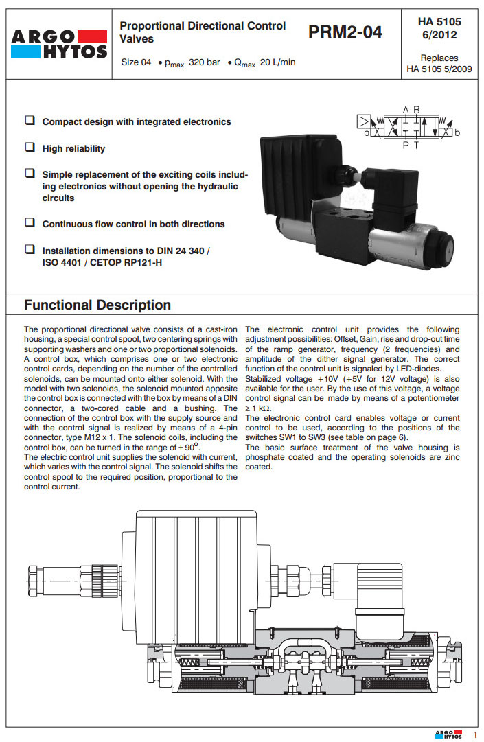 首頁 > 產(chǎn)品&解決方案 > PRM2-04,PRM2-042Z51/4-12,PRM2-043Z12/12-24,PRM2-043Y12B/8-24,PRM2-043Z12/12-12,ARGO比例方向控制閥
