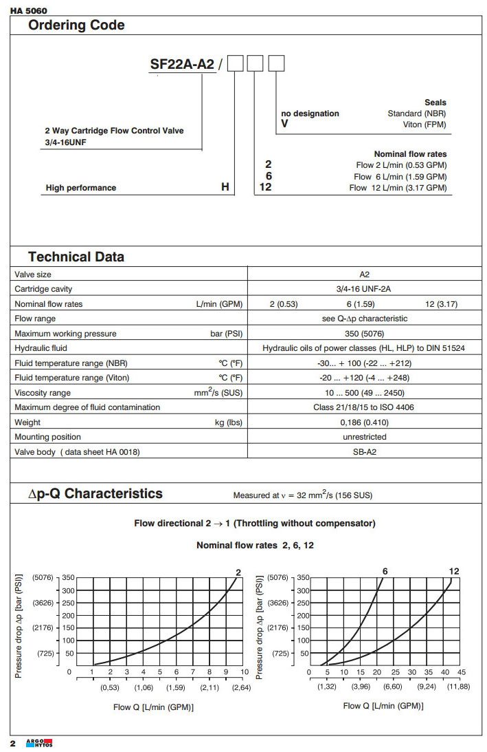 SF22A-A2/H2,SF22A-A2/H6,SF22A-A2/H12,ARGO 2路插裝流量控制