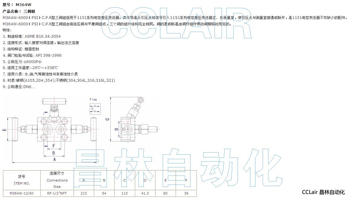 » M364W-12,M364W-6K, 三閥組