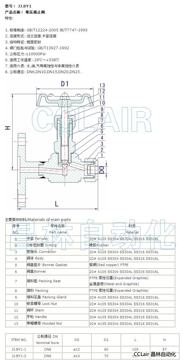 JJ.BY1-1,JJ.BY1-2, 取壓截止閥