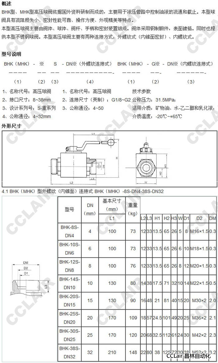 詳細(xì)信息 MHK-G1-DN25,MHK-G11/4-DN32,MHK-G11/2-DN40,MHK-G2-DN50,高壓球閥