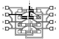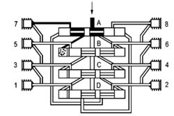 | 六、使用說(shuō)明 1、在系統(tǒng)中推薦最多通過(guò)“兩級(jí)”來(lái)進(jìn)行潤(rùn)滑劑的分配。 2、排出油口1和2始終不能關(guān)閉。 3、始終使用原配的排出油口油嘴零件組。 4、裝拆調(diào)換油嘴零件時(shí)要從每側(cè)的上部或最下部吐出口開(kāi)始。 5、如果吐出口要補(bǔ)充關(guān)閉,合并潤(rùn)滑劑量(改流到下面低數(shù)的吐出口排出),必須去掉油嘴體,用M10×1螺塞封堵按下圖范例連接。 |