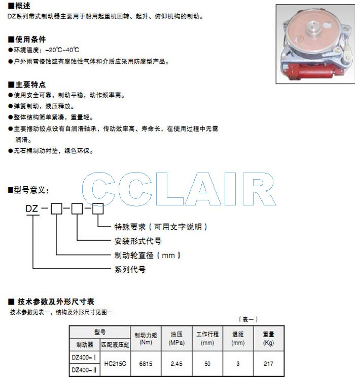 DZ400-I,DZ400-II,DZ480-I,DZ480-II,DZ600-I,DZ800-I,DZ800-II,DZ900-I,DZ900-II,帶式制動器