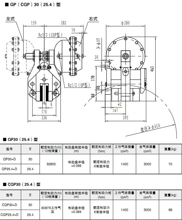 詳細(xì)信息 CQP12.7-A,CQP12.7-B,QPL12.7A-A,QPL12.7A-B,CQPL12.7A-A,氣動(dòng)鉗盤式制動(dòng)器