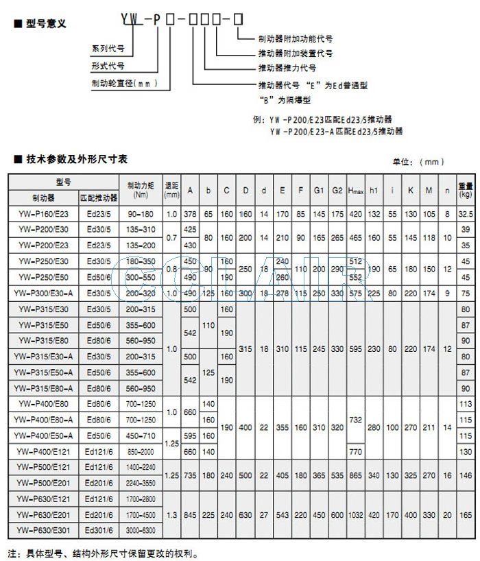 詳細(xì)信息 YW-P315/E80,YW-P315/E30-A,YW-P315/E50-A,YW-P315/E80-A,電力液壓鼓式制動(dòng)器
