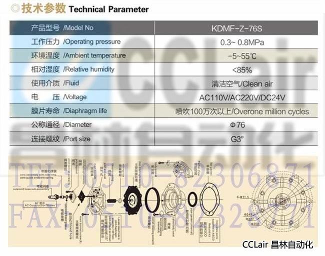 KDMF-Y-76S,淹沒式電磁脈沖閥,