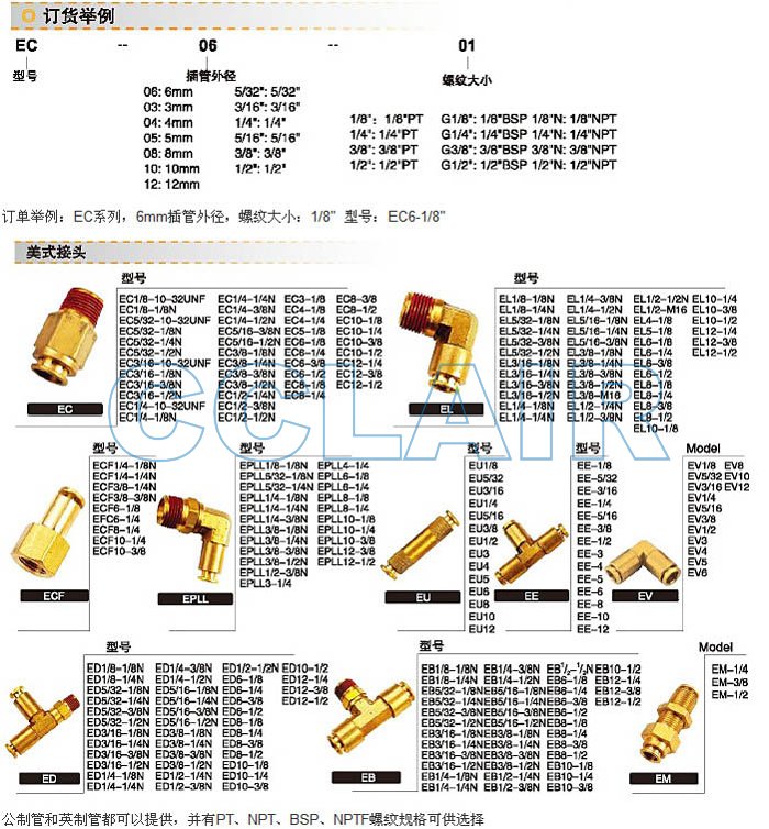 詳細(xì)信息 EV1/8,EV5/32,EV3/16,EV1/4,EV5/16,EV3/8,EV1/2,EV3,EV4,EV5,EV6,EV8,EV10,EV12,美式接頭