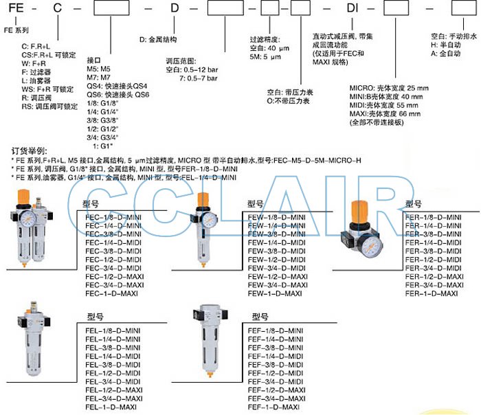 FECS-M5-D,FECS-M7-D,FECS-QS4-D,FECS-QS6-D,FECS-1/8-D,FECS-1/4-D,FECS-3/8-D,氣源處理件