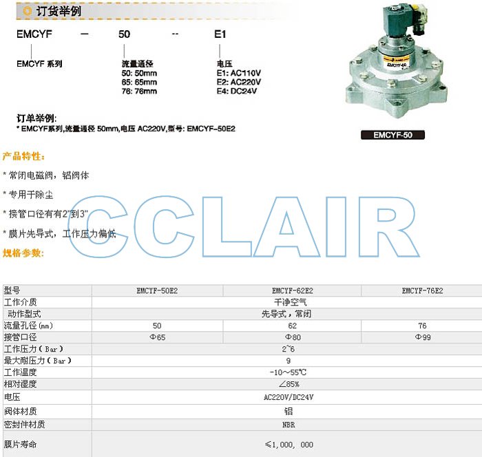 詳細(xì)信息 EMCYF-50E1,EMCYF-65E1,EMCYF-76E1,EMCYF-50E2,EMCYF-65E2,EMCYF-50E4,脈沖閥