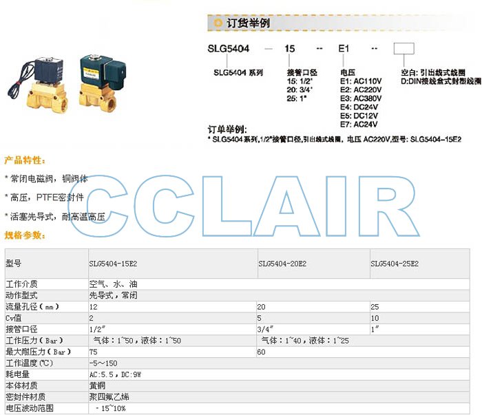 SLG5404-15E1,SLG5404-15E2,SLG5404-20E3,SLG5404-25E4,SLG5404-20E5,高壓電磁閥
