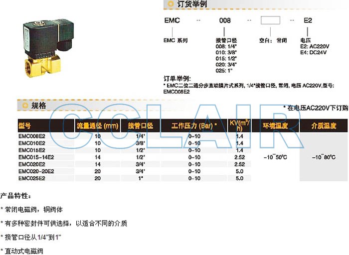 詳細(xì)信息 EMC008E2,EMC010E2,EMC015E2,EMC020E2,EMC025E2,EMC008E4,EMC010E4,直動(dòng)式膜片式電磁閥
