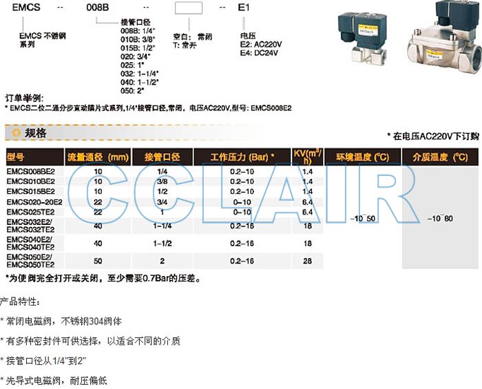 詳細(xì)信息 EMCS008BE2,EMCS010BE2,EMCS015BE2,EMCS020E2,EMCS025E2,EMCS032E2,不銹鋼電磁閥