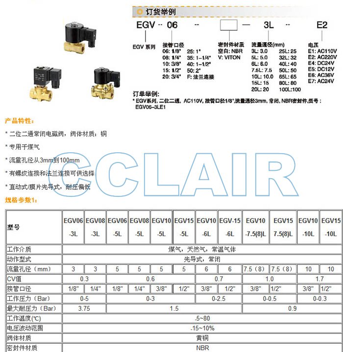 EGV06-3L,EGV08-5L,EGV10-6L,EGV15-7.5L,EGV20-10L,EGV06-15L,天然氣專用電磁閥