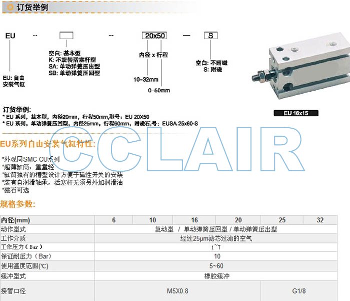 EU6X50,EUSB6X50,EUK10X50,EU16X50,EU20X50,EU25X50,EU32X50,薄型氣缸
