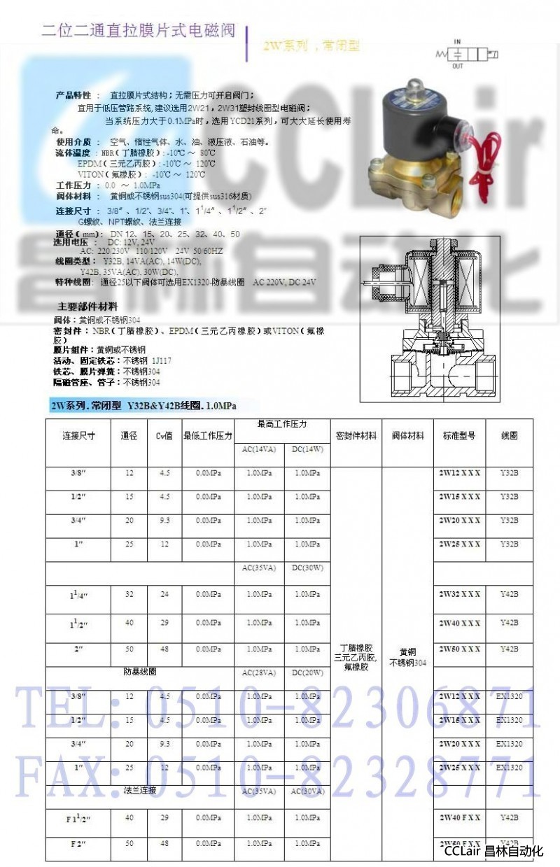 2W12,2W15,2W20,2W25,2W32,二位二通直拉膜片式電磁閥