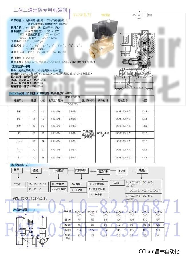 YCXF12, YCXF15, YCXF20, YCXF25, YCXF32, YCXF40, YCXF50, 二位二通消防專用電磁閥
