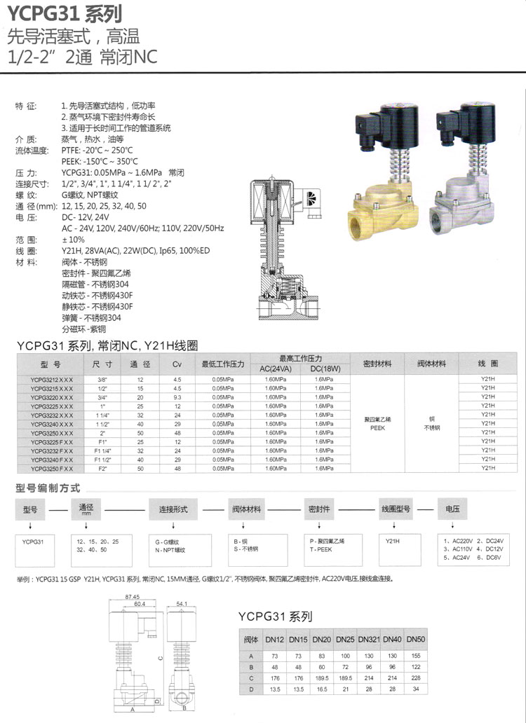 YCPG3112,YCPG3115,YCPG3120,YCPG3125,YCPG3132,YCPG3140,YCPG3150,YCPG3125F,先導(dǎo)活塞式電磁閥