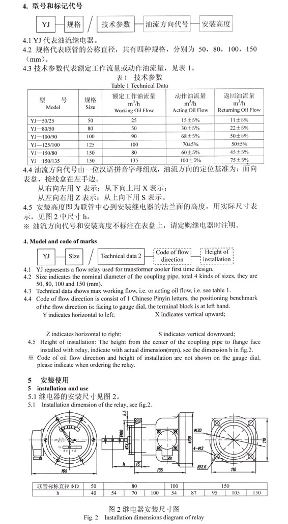 YJ-50/25,YJ-80/50,YJ-100/90,YJ-125/100,YJ-150/80,YJ-150/135,油流繼電器
