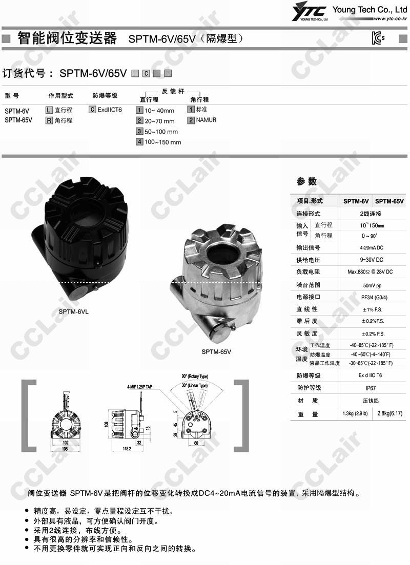 » SPTM-6VL,SPTM-65V,YTC智能閥位變送器