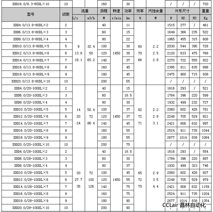 XBD12.9/1.72-40DL×11,XBD14.1/1.72-40DL×12,XBD2.44/3.5-50DL×2,