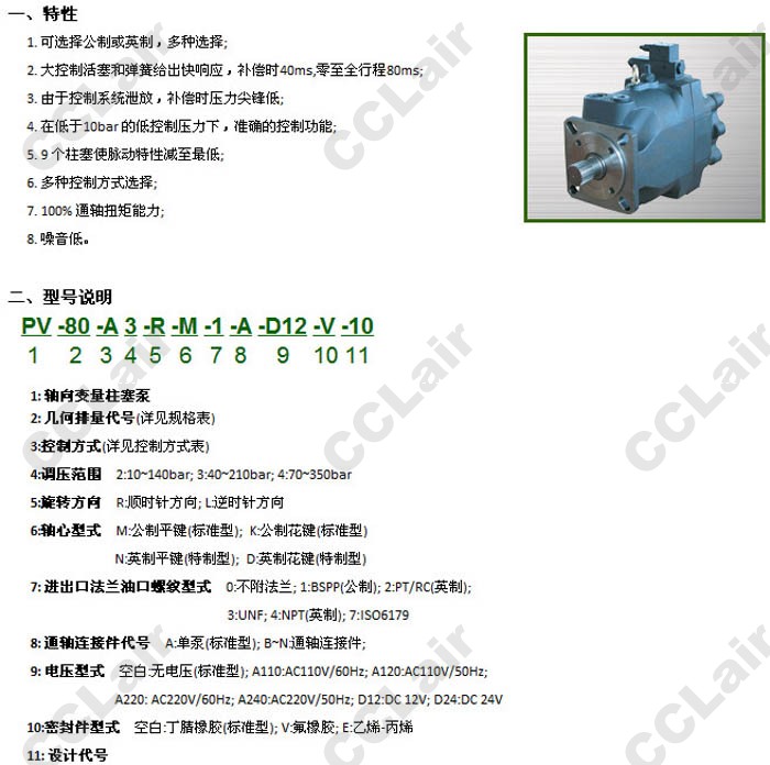 PV20,PV23,PV32,PV40,PV46,PV63,PV71,PV80,PV92,PV140,PV180,PV16A3RM1AD12V10,PV270A3RM1AD12V10,