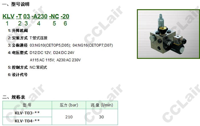 詳細(xì)信息 KLV-T03-D12-NC-20,KLV-T04-D24-NC-20,KLV-T03-A115-NC-20,KLV-T04-A230-NC-20,升降機(jī)閥